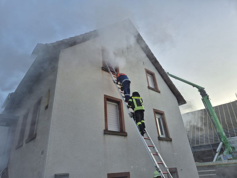 In einem Wohnhaus brach im Erdgeschoss ein Brand aus. Im Obergeschoss wurden zwei Personen vermisst. Bei diesem Szenario wurde die Brandbekämpfung und Menschenrettung, auch über Steckleiter, unter Atemschutz beübt.