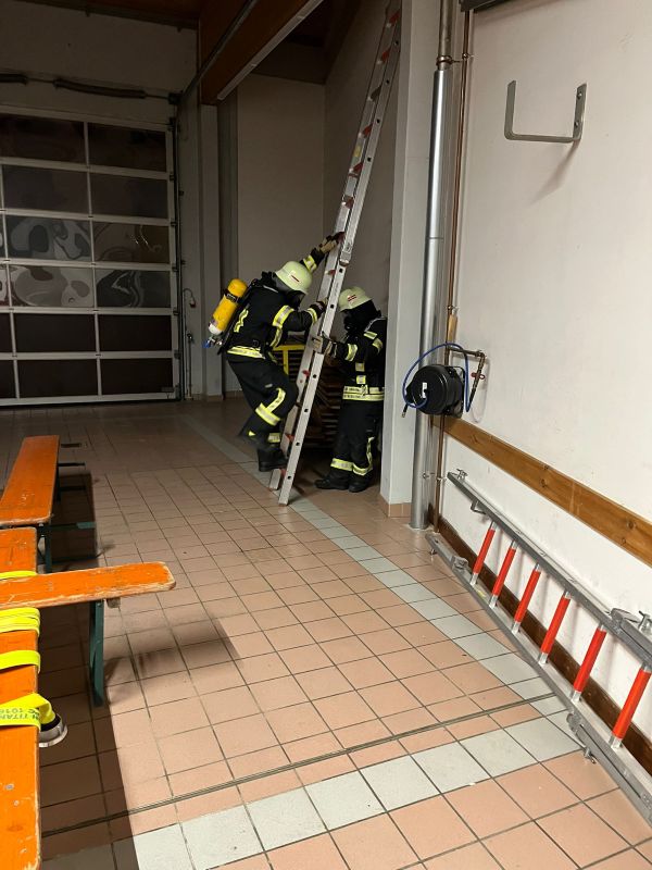 Neben der jährlichen UVV-Unterweisung fand auch die IRS-Unterweisung der Atemschutzgeräteträger statt. Im Gerätehaus Neckargemünd wurde das Selbstretten geübt.