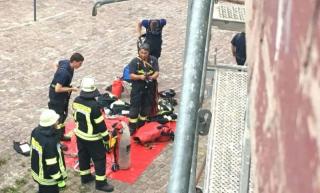 Die Aufgabe der Übung bestand darin, neben dem Aufbau eines Löschangriffs auch mehrere verletzte Personen von einem Gerüst zu retten.