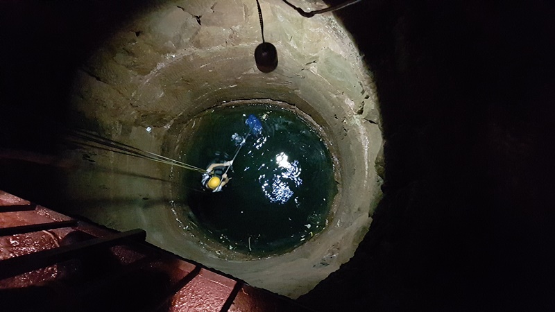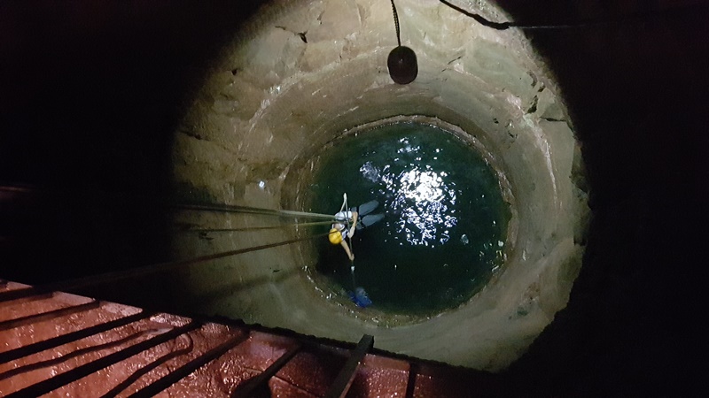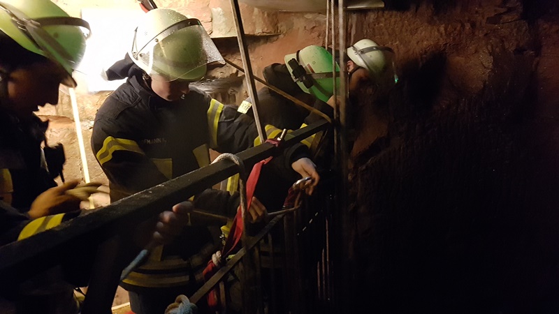 Der 45m tiefe Burgbrunnen war das Übungsobjekt zum Thema "Retten aus Höhen und Tiefen". Als Aufgabe galt es eine über die Brüstung des Burgstollens gestürzte Person aus dem Burgbrunnen zu retten. In diesem Zuge wurde gleich der Müll, welcher durch die Burgbesucher in den Brunnen geworfen wurde, von der Wasseroberfläche entfernt.